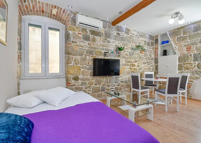 Indkvarteringen er placeret inden for et 5 minutters kørsel fra Kroatiens Søfartsmuseum. Byens centrum ligger kun 1 km væk og Split lufthavn er 30 km derfra. Internationale og kroatiske retter serveres på steakhouse Chops Grill. Denne ferielejlighed står ved siden af Prokurative.